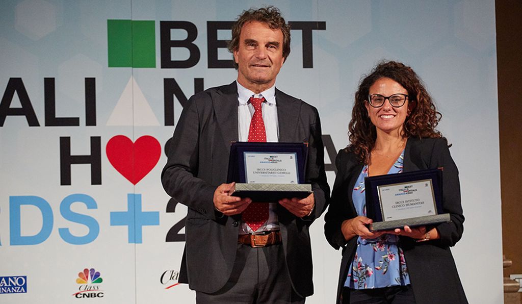 Il premio è stato ritirato dal professor Marco Elefanti, Direttore Generale di Fondazione Policlinico Universitario Agostino Gemelli IRCCS, mentre per la categoria ‘miglior Gruppo privato di eccellenzà, nella quale il Gemelli si è collocato al secondo posto dopo il Gruppo San Donato, ha ritirato il premio il professor Sergio Alfieri, componente del CdA e Direttore del Dipartimento di Scienze Mediche e Chirurgiche Addominali e Endocrino-Metaboliche di Fondazione Policlinico Universitario Agostino Gemelli IRCCS. Nella classifica dei BIHA, il Gemelli figura anche nella top tre italiana dei Centri Oncologici, insieme a IEO e San Raffaele di Milano.