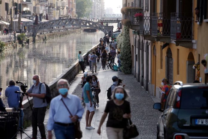 PERSONE SUI NAVIGLI EMERGENZA CORONAVIRUS CORONA VIRUS COVID19 COVID 19 MASCHERINA MASCHERINE NAVIGLI DURANTE LA FASE2 FASE 2 FASE DUE
