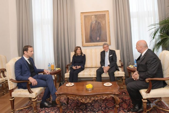 Il governatore del Friuli Venezia Giulia, Massimiliano Fedriga, ha accolto stamani la presidente del Senato, Maria Elisabetta Alberti Casellati, nel palazzo della Regione. L’incontro con la seconda carica dello Stato, accompagnata dal commissario di governo e prefetto di Trieste, Valerio Valenti, e dal sindaco di Trieste, Roberto Dipiazza, si è tenuto nella sala Berzanti. Al termine dei colloqui, Fedriga ha omaggiato la presidente del Senato di un mosaico di Spilimbergo. La Casellati ha ricambiato con una targa raffigurante Palazzo Madama.