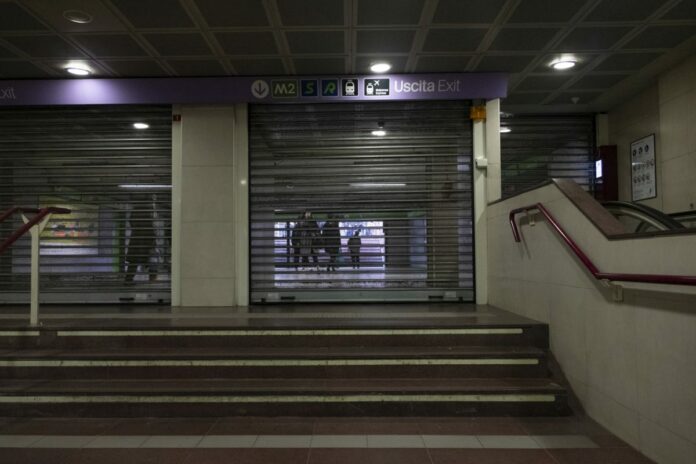 MILANO - Metro M5. Porta Garibaldi. Sciopero dei mezzi, chiusura metro. (MILANO - 2023-11-10, ALESSANDRO CIMMA) p.s. la foto e' utilizzabile nel rispetto del contesto in cui e' stata scattata, e senza intento diffamatorio del decoro delle persone rappresentate