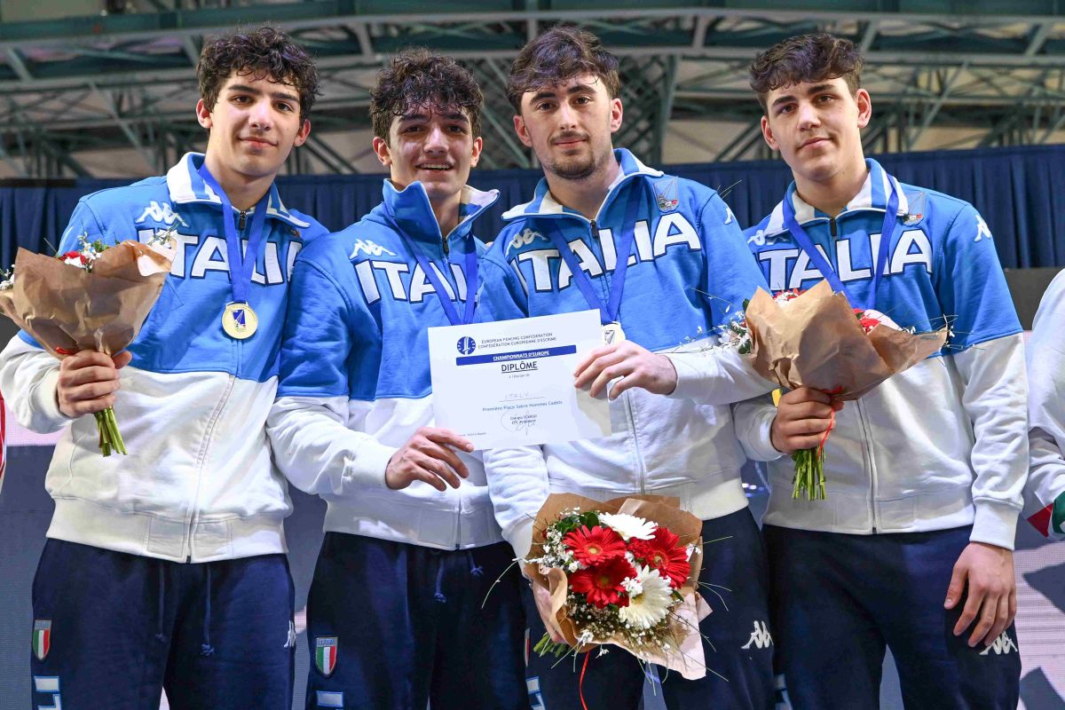 Nella domenica del PalaVesuvio, impreziosita dalla presenza del ministro per lo Sport e i Giovani, Andrea Abodi, l’Italia degli sciabolatori Under 17 si è laureata campione d’Europa dopo una prestazione eccezionale. Oro al collo per i fratelli Leonardo Reale (già vincitore dell’individuale, e premiato anche come primo classificato nel Circuito Europeo Cadetti di questa stagione) e Valerio Reale, Massimo Sibillo e Christian Murtas. Gli azzurrini hanno cominciato la propria cavalcata battendo negli ottavi di finale la Polonia per 45-22. Con la stessa autorità, i ragazzi guidati in panchina dai maestri Fabio Di Lauro e Ilaria Bianco, dello staff tecnico del ct Nicola Zanotti, hanno sconfitto nei quarti la Spagna 45-31. Emozionante, palpitante e durissima la semifinale contro l’Ungheria, che l’Italia è riuscita a conquistare con il punteggio di 45-43, guadagnandosi così il pass per l’ultimo atto. La finale con la Bulgaria ha messo il punto esclamativo sulla giornata speciale della sciabola italiana: 45-36 il punteggio con cui, trascinati dal gran tifo di un numeroso pubblico, gli azzurrini sono riusciti a conquistare la medaglia più preziosa. Abbracci ed emozioni per i fratelli Reale, Murtas e Sibillo, quest’ultimo da “padrone di casa” e festeggiato anche dal sindaco di Napoli, Gaetano Manfredi.