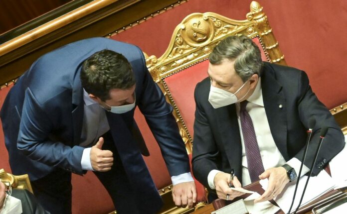 MARIO DRAGHI PRESIDENTE DEL CONSIGLIO, MATTEO SALVINI LEGA,