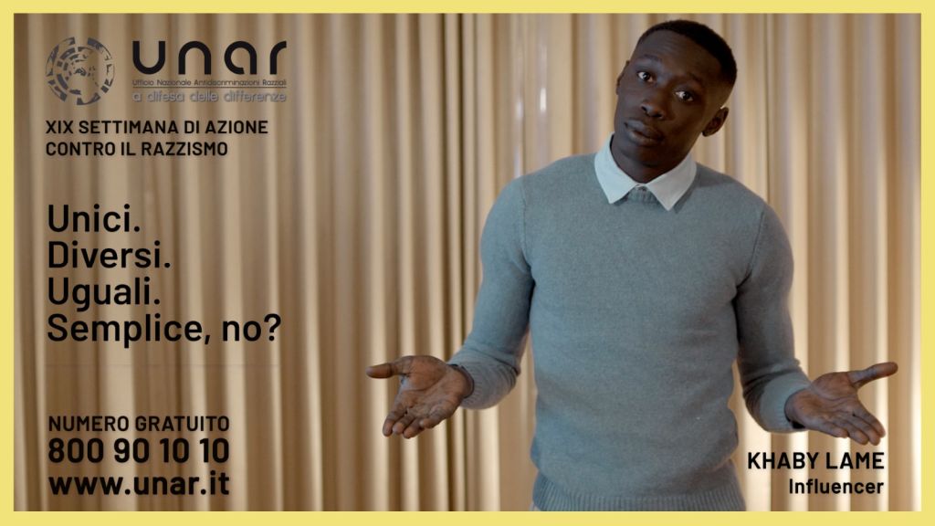 ROMA (ITALPRESS) – Un gesto semplice che ha fatto il giro del mondo lasciando che sia l’evidenza dei fatti a parlare. E’ il gesto, ormai famoso, del TikToker e influencer Khaby Lame che lo ha messo al servizio di una causa importante con il suo sorriso, la sua autenticità, l’ironica leggerezza. Khaby ha, infatti, scelto di essere il testimonial della campagna istituzionale, #UniciDiversiUguali, voluta dalla ministra per la Famiglia, la Natalità e le Pari opportunità Eugenia Maria Roccella per celebrare la Giornata Internazionale per l’eliminazione della discriminazione razziale che l’Onu ha istituito per ricordare il massacro di Sharpeville del 21 marzo del 1960, in Sudafrica, quando, in pieno apartheid, la polizia ha aperto il fuoco su un gruppo di dimostranti di colore uccidendone 69 e ferendone 180. iffuso sulle reti Rai, radio e tv, oltre che sui social a partire dal 20 marzo, lo spot è ideato e realizzato dal Dipartimento per l’informazione e l’editoria guidato dal Sottosegretario alla Presidenza del Consiglio Alberto Barachini. #UniciDiversiUguali pone l’accento sull’unicità di ognuno di noi, che si esprime attraverso il nostro carattere; sulla diversità, che si manifesta nelle nostre preferenze, musicali o sportive, e, nello stesso tempo, su ciò che ci accomuna, l’essere umani. Tre evidenze, l’unicità, la diversità e l’uguaglianza che Khaby Lame sottolinea con la forza del suo gesto. “Stagione preferita? Carattere? Genere musicale preferito? Sport preferito?”, sono le domande cui risponde ciascuno dei protagonisti che, poi, intonano all’unisono lo slogan della campagna, ‘Unici. Diversi. Uguali’, prima di lasciare spazio al testimonial Khaby Lame, mentre una voce fuori campo dà le informazioni utili sul tema. (ITALPRESS).