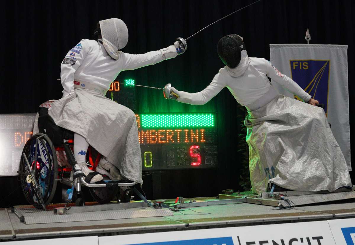 PISA (ITALPRESS) – Suona l’Inno di Mameli nel day-2 della tappa di Coppa del Mondo di scherma Paralimpica a Pisa. L’Italia svetta infatti sul gradino più alto del podio grazie a Emanuele Lambertini, che trionfa nella gara di spada maschile categoria A. Ma è solo una delle quattro medaglie di giornata per la Nazionale azzurra che festeggia anche il secondo posto di Rossana Pasquino nella sciabola femminile categoria B e i due bronzi vinti da Matteo Dei Rossi nella prova degli spadisti categoria A (a far compagnia sul podio a Lambertini) e da Michele Massa nel fioretto maschile categoria B. Un venerdì straordinario, insomma, all’ombra della Torre Pendente: dopo il triplo podio azzurro nella giornata inaugurale (con il secondo posto di Matteo Betti e il terzo di Emanuele Lambertini nel fioretto maschile categoria A e la seconda piazza di Rossana Pasquino nella spada femminile categoria B), oggi il Tricolore sventola ancora più in alto per la soddisfazione dei tre ct Francesco Martinelli (spada), Marco Ciari (sciabola) e Simone Vanni (fioretto) e del coordinatore del settore paralimpico Dino Meglio. Copertina tutta per Emanuele Lambertini che nella spada maschile categoria A sciorina una prestazione straordinaria. Nell’ordine, il francese Cursiefen, il polacco Nalewajek e il tedesco Schmidt cadono sotto i colpi dell’emiliano che in semifinale si trova ad affrontare il derby azzurro contro Matteo Dei Rossi. Il veneto aveva invece guadagnato la certezza di un posto sul podio vincendo prima con l’indiano Bidlan, poi contro il tedesco Waddel, infine aggiudicandosi per 15-14 il quarto di finale tutto italiano contro Edoardo Giordan (sesto classificato). In semifinale Lambertini batte Dei Rossi per 15-11 e completa poi il capolavoro in finale imponendosi con un secco 15-7 sul turco Akkaya, che nei quarti aveva negato un posto sul podio a Matteo Betti (settimo posto per il senese) battendolo all’ultima stoccata. Ha chiuso in 36esima piazza Elio Iozzi. Per Lambertini urlo di gioia e abbraccio con Bebe Vio, che ha seguito i suoi compagni al PalaCus di Pisa in veste di tifosa speciale. Seconda medaglia d’argento in due giorni invece per Rossana Pasquino: dopo la spada, la sciabola, sempre nella categoria B. La prof campana, testa di serie numero 1 dopo un grande girone, ha superato la polacca Pacek e poi in semifinale la tedesca Tauber, arrendendosi solo in finale, per 15-14, alla georgiana Khetsuriani. Nella stessa gara, decimo posto per Matilde Spreafico. Emozionante medaglia di bronzo per Michele Massa nel fioretto maschile categoria B. Il marchigiano, dopo aver superato nei quarti l’ungherese Gergely, ha coronato il sogno del suo primo podio in Coppa del Mondo, cedendo poi in semifinale al francese Vandon. Infine, nella spada femminile categoria A, settimo posto per Veronica Martini, a seguire Sofia Brunati (decima), Rebecca D’Agostino (11esima), Sofia Della Vedova (12esima) e Letizia Baria (16esima). Domani, a Pisa, terza giornata della Coppa del Mondo di scherma paralimpica con le gare di fioretto femminile categoria B, sciabola maschile categoria A, sciabola maschile categoria B e fioretto femminile categoria A.