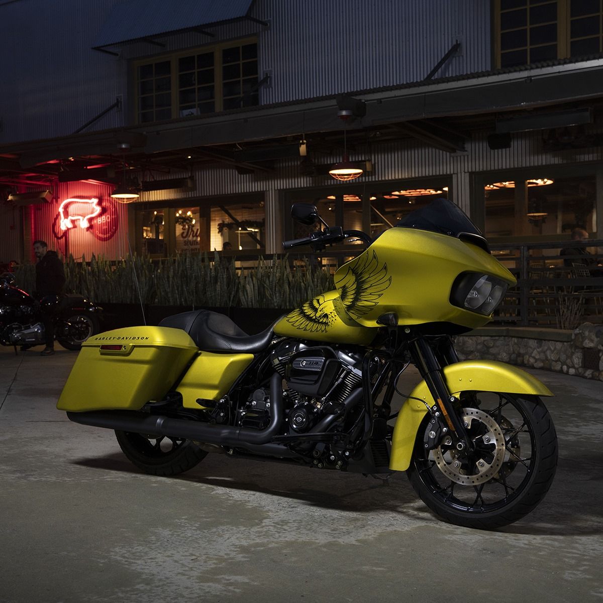 È adesso disponibile per la Harley-Davidson Road Glide Special la nuova opzione di verniciatura di serie Eagle Eye Special Edition. L’opzione colore Eagle Eye è su base giallo brillante con una finitura lucida trasparente. La chicca del design è la maestosa aquila nera con le ali spiegate sul lato destro della moto che va dal serbatoio alla carenatura. Il classico logo Bar & Shield si trova sul lato sinistro del serbatoio. La scritta Harley-Davidson è allineata sul bordo esterno delle borse laterali caratterizzate queste ultime da cerniere in tinta. La colorazione in edizione speciale è applicata su carenatura, serbatoio, parafanghi, borse laterali e carenatura motore. Il prezzo base del modello Road Glide Special 2020 con l’opzione Paint Eye Special Edition di Eagle Eye è 30.750 euro.