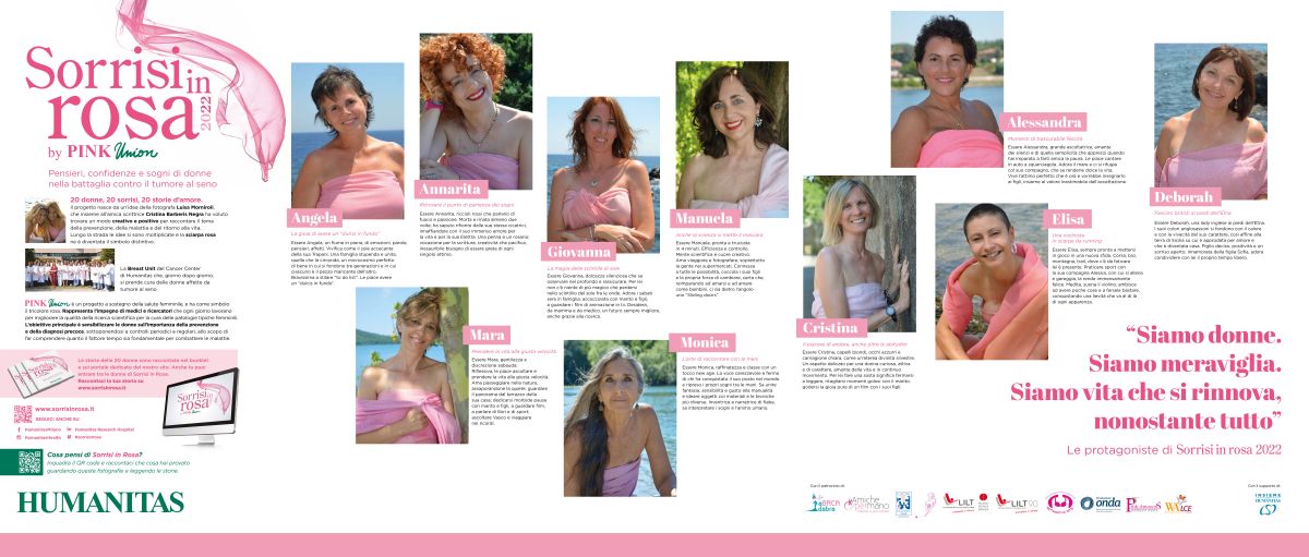 Sorrisi in Rosa è parte di Pink Union di Fondazione Humanitas per la Ricerca, il progetto a sostegno della salute femminile che rappresenta l’impegno di medici e ricercatori che ogni giorno lavorano per aprire nuove strade alla cura delle patologie tipicamente femminili. Sostenere la Ricerca è semplice, basta andare su www.sorrisinrosa.it, dove è anche possibile acquistare la sciarpa simbolo dell’iniziativa. Le donazioni sosterranno iniziative di supporto psico-sociale per accompagnare le pazienti nell’affrontare i cambiamenti del proprio corpo e trovare la forza di accettare gli effetti delle cure.