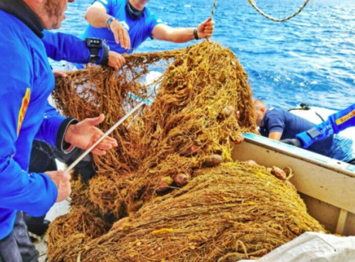 ROMA (ITALPRESS) – Le attrezzature da pesca abbandonate sono i rifiuti maggiormente rinvenuti nei mari di tutto il mondo, e rappresentano una delle più serie minacce alla biodiversità marina: per questo la Divisione Subacquea di Marevivo si è immersa nelle acque dell’Isola delle Femmine e di San Vito Lo Capo liberandole da due reti fantasma, tra cui una rete spadara derivante lunga oltre 2.500 metri. Le reti spadare sono dispositivi estremamente pericolosi per la fauna marina e per questo, anche grazie al lavoro di Marevivo, illegali in Italia dal 2002, ma nonostante questo continuano a essere utilizzate minacciando gli ecosistemi marini. L’operazione – condotta nell’ambito di Linea Gialla, il progetto di tutela ambientale di DHL Express Italy e Federazione Italiana Pallavolo in collaborazione con Marevivo che si svilupperà in diverse tappe sul territorio nazionale, è stata realizzata dai sub di Marevivo con il supporto del Nucleo Subacqueo dei Carabinieri e della Guardia Costiera-Corpo delle Capitanerie di Porto, coadiuvati dai biologi marini di Marevivo che hanno assistito alle operazioni e fatto un’attività di analisi dello stato della rete che era adagiata su un fondale caratterizzato dalle tipiche biocenosi del coralligeno Mediterraneo.