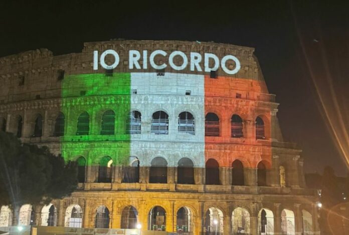 Il Colosseo si tinge con i colori del Tricolore e la scritta “Io ricordo” per celebrare il Giorno del Ricordo in memoria delle vittime delle foibe. Il ministro della Cultura, Gennaro Sangiuliano, e il ministro dell’Agricoltura, della sovranità alimentare e delle foreste, Francesco Lollobrigida, hanno presenziato all’accensione della proiezione che ha proietta i colori della bandiera italiana sul celebre monumento. “Penso che il Colosseo sia un monumento universalmente noto che in un certo senso è anche uno dei tanti simboli importanti dell’Italia. Quindi c’è parso di sottolineare, tra le tantissime iniziative assieme all’illuminazione della facciata di Palazzo Chigi, di sottolineare il Giorno del Ricordo anche con questa illuminazione del Tricolore”, ha detto il ministro Sangiuliano.