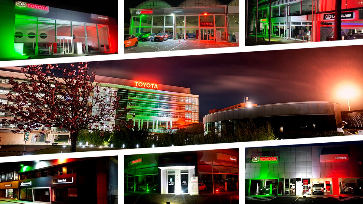 La maggior parte delle sedi del Gruppo Toyota – Direzione Centrale e Rete dei Concessionari Toyota e Lexus – da questa settimana si stanno illuminando con il tricolore nazionale, accendendosi come tanti puntini per unire ed abbracciare tutta l’Italia. Con questo ulteriore e semplice gesto la Comunità di Toyota in Italia vuole manifestare, con fierezza e partecipazione, la propria vicinanza a tutti gli Italiani e al Paese, che sta sfidando il proprio “impossibile” in questa difficile situazione.