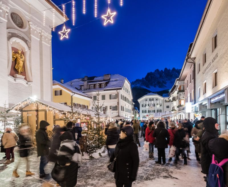 Il “Natale nelle Dolomiti” è un’autentica attrattiva per i visitatori. La suggestione del Natale è impreziosita da una cornice unica, nel centro storico di una delle località più caratteristiche di tutto l’arco alpino. Passeggiando dalla Collegiata, imponente duomo in stile romanico, alla chiesa di San Michele, passando poi per la zona pedonale, le numerose casette di legno offrono ogni ben di Dio, da prodotti artigianali del territorio a specialità tipiche. E ancora: presepi e candele, decorazioni natalizie, articoli in feltro e originalissime idee regalo in tipico stile tirolese. Non mancano, naturalmente, specialità tradizionali come punch caldo, vin brulè e i classici biscotti di pan pepato.