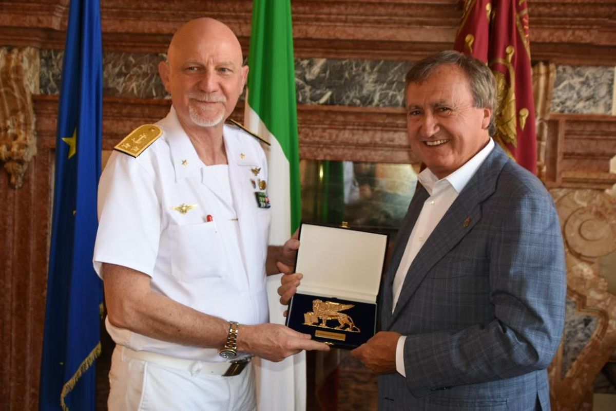 Il sindaco Brugnaro saluta l’ammiraglio Pellizzari