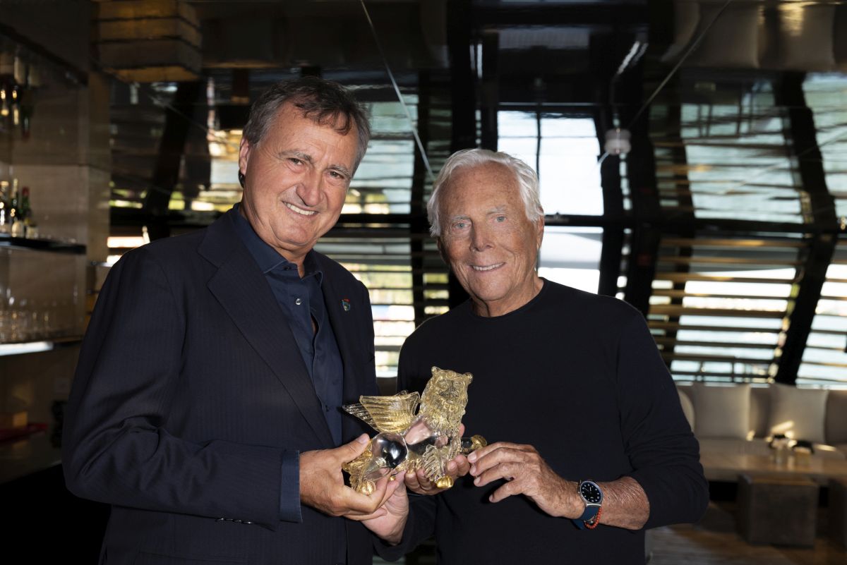 “Questo è un premio che personalmente ho voluto riconoscere all’uomo, al suo impegno e alla sua grande passione per il bello, che ha saputo trasformare in un’impresa di successo, simbolo del Made in Italy nel mondo – spiega il sindaco, Luigi Brugnaro – La consegna del Leone d’Oro, forgiato nelle fornaci di vetro di Murano, è l’omaggio sincero di un’intera Città patrimonio del mondo”. “Questo premio è per me motivo di gioia e di emozione: un riconoscimento importante al mio lavoro, che sono felice arrivi proprio nell’anno dell’80esimo Festival, in occasione di One Night Only Venezia, evento che ho deciso di organizzare come omaggio alla città, a cui sono da molti anni fortemente legato” ha commentato Giorgio Armani. “Una personalità straordinaria, un’icona della moda italiana nel mondo, ma anche lo stilista che ha un forte legame con il cinema e soprattutto con Venezia dove nel 1990 nacque il suo rapporto con il Festival del Cinema: ‘Made in Milan’ fu presentato in anteprima con una grande festa alla Giudecca proprio per suggellare questa bellissima liaison con Venezia”.