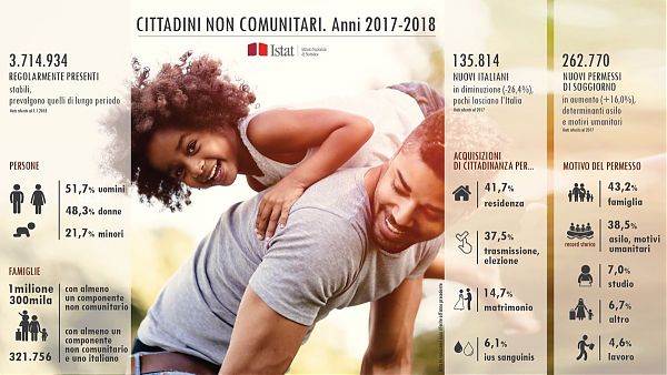 Al 1° gennaio 2018 le famiglie con almeno un cittadino non comunitario (con permesso di soggiorno valido) sono circa 1 milione e 300 mila.
