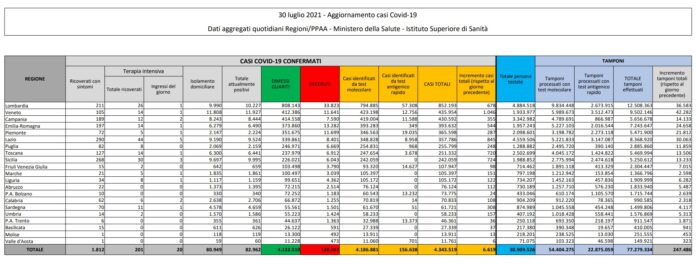 In italia 6.619 nuovi contagiati e 18 decessi, salgono i ricoveri