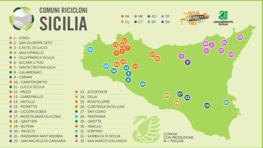 In Sicilia 170 Comuni “ricicloni”, 33 “rifiuti free”