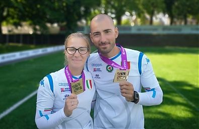 L’Italia chiude i Campionati Mondiali di tiro con l’arco di ‘s-Hertogenbosch (Ned) esultando per la medaglia di bronzo conquistata oggi nel mixed team arco olimpico. Vanessa Landi e Mauro Nespoli battono Taipei (Lei,Tang) 5-3 e volano sul podio iridato dopo una bella rimonta. Poco dopo arriva per Mauro Nespoli la sconfitta nella finale per il bronzo individuale contro l’atleta del Bangladesh Md Ruman Shana per 7-1. L’avventura di Nespoli è comunque un successo visto che nei giorni scorsi aveva regalato all’Italia la carta olimpica per Tokyo 2020. La prima medaglia azzurra ai Mondiali di ‘s-Hertogenbosh, in Olanda, arriva grazie al mixed team composto da Vanessa Landi e Mauro Nespoli. I due arcieri dell’Aeronautica battono Taipei (Lei, Tang) 5-3 e si prendono un meritatissimo bronzo dopo una bella rimonta. L’inizio di gara premia infatti gli asiatici, numero due del mondo nel mixed team, con il 38-36 del primo parziale. La seconda volée termina in parità 34-34 con gli azzurri bravi a scuotersi nonostante la prima freccia di Vanessa Landi vada ad incocciare il “7”.