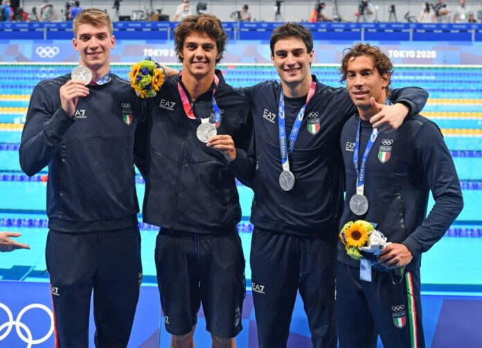 TOKYO (GIAPPONE) (ITALPRESS) – L’Italia vince la medaglia d’argento nella 4×100 stile libero ai Giochi Olimpici di Tokyo. Il quartetto azzurro formato da Alessandro Miressi, Thomas Ceccon, Lorenzo Zazzeri e Manuel Frigo ha chiuso in 3’10″11, battuta solo dagli Stati Uniti (3’08″97). Bronzo per l’Australia in 3’10″22.
