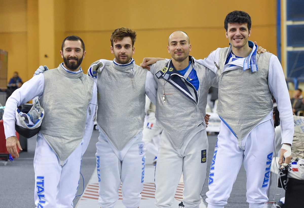 L’Italia rimane fuori dal podio nella gara a squadre che conclude la tappa del Cairo del circuito di Coppa del Mondo di fioretto maschile. La squadra azzurra formata da Andrea Cassarà, Alessio Foconi, che ieri hanno conquistato il secondo e terzo gradino del podio, Giorgio Avola e Daniele Garozzo, dopo aver iniziato col successo nel turno dei 16 per 45-30 contro il Canada, è stata fermata ai quarti dalla Russia, poi sconfitta in finale dagli Usa per 45-36, col punteggio di 45-36. Per la squadra italiana si è quindi aperto il tabellone dei piazzamenti dove è giunta la battuta d’arresto per 45-44 ad opera del Giappone. Infine, nell’ultimo assalto di giornata, gli azzurri hanno sconfitto la Corea del Sud per 45-25, concludendo così al settimo posto in classifica generale.