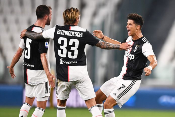 La Juventus vince lo scudetto con due giornate di anticipo. Dopo il match point sfumato contro l’Udinese alla Dacia Arena, la formazione di Maurizio Sarri non sbaglia e batte la Sampdoria per 2-0 conquistando il nono titolo consecutivo, 36esimo totale, grazie ai gol di Cristiano Ronaldo e Bernardeschi. All’Allianz Stadium Sarri perde Dybala per infortunio al 40’ in un primo tempo che fa registrare altri due problemi fisici: Chabot (dentro Leris al 22’) e Danilo (dentro Bernardeschi al 29’). La Juventus si affida alla voglia di CR7 di rispondere a Ciro Immobile, autore di una tripletta contro l’Hellas Verona e sempre più leader della classifica marcatori. Dopo una prima frazione di gioco equilibrata sul piano dei tiri in porta (2-3), ma non su quello del possesso palla (65% – 35%), la svolta del match si registra al 7’ di recupero del primo tempo: Pjanic da calcio piazzato premia il movimento di Cristiano Ronaldo che si libera e col destro batte Audero per l’1-0 bianconero.
