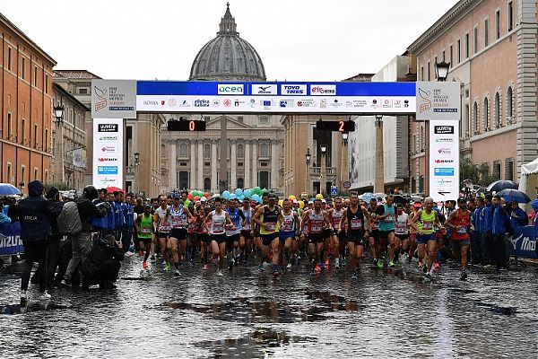Tutti in strada per lanciare un messaggio di pace. È di Fatna Maraoui il successo al femminile nella terza edizione della Rome Half Marathon Via Pacis, la corsa della fratellanza e del dialogo, ideale abbraccio tra i luoghi di culto di cinque confessioni religiose. La campionessa italiana dei 10 km su strada va a bersaglio sui 21,097 km della capitale, segnando il record della manifestazione con il tempo di 1h14:12. Pioggia alla partenza in via della Conciliazione, incorniciata nello scenario meraviglioso della Basilica di San Pietro, e fondo stradale bagnato, ma le condizioni meteo non hanno rovinato la festa dei runners, ai quali si è rivolto Papa Francesco durante l’Angelus: “Saluto tutti i partecipanti della Via Pacis che stamattina hanno attraversato le strade di Roma per un messaggio di pace, fraternità e soprattutto dialogo tra culture e religioni diverse”. La 42enne azzurra dell’Esercito, medaglia d’argento a squadre lo scorso anno agli Europei di Berlino in maratona, si porta al comando intorno al dodicesimo chilometro e vola in solitaria fino al traguardo, battendo il primato che apparteneva a Sara Brogiato (1h15:37) e prevalendo su Vivian Jerop Kemboi (Atl. Castello, 1h15:41) e sulla burundese Cavaline Nahimana (Freezone, 1h16:09): “Più si va avanti con gli anni e meglio si corre – le parole della Maraoui – perché l’allenamento si affronta con un’altra testa. Oggi è stata dura perché il percorso era tutto bagnato, ma l’ho preso come un test per la maratona di Lubiana che sto preparando e che correrò il 27 ottobre. Spero di poter dire ancora la mia. Ringrazio i miei colleghi dell’Esercito che oggi hanno fatto un gran tifo”. Tra gli uomini, la vittoria non sfugge al favorito della vigilia: finisce davanti a tutti il 33enne keniano Joel Maina Mwangi (Dinamo Sport) con il crono di 1h04:16. “Ho provato a fare del mio meglio nonostante la pioggia – il commento di Mwangi – è un buon tempo e sono fiero di essere stato il più veloce su questo percorso così bello”. Secondo posto, e primo degli italiani, per Vincenzo Agnello (Atl. Casone Noceto) con 1h06:29: “Volevo correre a Roma a tutti i costi, non sapevo se concentrarmi sulla gara oppure godermi i monumenti di Roma”. Kenya sul podio anche con Stanley Siteki (Atl. Potenza Picena) terzo in 1h07:02. Al traguardo della mezza sono arrivati in 2039 (1598 uomini e 441 donne). Prima della partenza, l’annuncio del presidente FIDAL Alfio Giomi con riferimento alla candidatura di Roma per gli Europei del 2024, per i quali è prevista la mezza maratona sul percorso della Via Pacis: “Dietro ai top runner degli Europei riserveremo un posto a tutti coloro che hanno partecipato a questa edizione e che prenderanno parte alle prossime”. Al via anche il saluto della sindaca di Roma Virginia Raggi: “Siamo orgogliosi di questo evento, e che Roma sia il crocevia del dialogo interreligioso – vogliamo diffondere lo stesso messaggio di non violenza del Mahatma Gandhi, a cui è dedicata la medaglia di quest’anno nel 150esimo anniversario della sua nascita”. Allo start erano presenti anche il vescovo ausiliare di Roma monsignor Paolo Selvadagi, l’ambasciatore degli Emirati Arabi Uniti in Italia Omar Alshamsi, l’ambasciatrice dell’India in Italia Reenat Sandhu, l’ambasciatore dell’Oman Ahmed Baomar, il capo di Stato Maggiore dell’Esercito Generale Salvatore Farina, l’assessore allo sport, politiche giovanili e grandi eventi cittadini Daniele Frongia e la presidente di Acea Michaela Castelli.