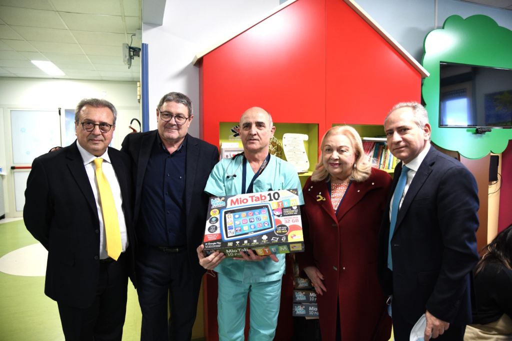 Gli otto tablet-gioco per bambini, la lavagna multimediale interattiva touchescreen da 65 pollici, i tre purificatori d’aria sono stati consegnati personalmente al reparto, diretto da Paolo D’Angelo, dalla moglie del presidente della Regione, Franca Schifani, accompagnata dal capo del cerimoniale di Palazzo d’Orléans Franco Di Chiara, dal commissario straordinario dell’Arnas Civico-Di Cristina Walter Messina e dal direttore sanitario Gaetano Buccheri.