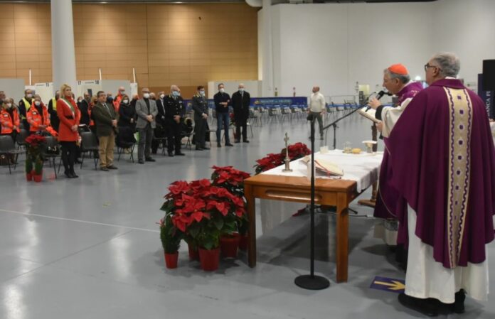 VENEZIA (ITALPRESS) – Il Patriarca di Venezia Francesco Moraglia ha celebrato una Santa Messa natalizia nel pomeriggio di oggi nel centro vaccinale del PalaExpo di Marghera, che ora chiude i battenti dopo il lungo impegno nel contrasto al Covid 19. Alla funzione, officiata per i sanitari, ha preso parte in rappresentanza dell’Amministrazione l’assessore ai Servizi al cittadino Laura Besio. Presente alla cerimonia anche il direttore generale della Ulss3 Edgardo Contato. Il rito è servito a ricordare l’ingente lavoro compiuto dagli operatori dell’Ulss3 Serenissima nell’hub di Marghera, simbolo della lotta alla pandemia nel territorio veneziano e in tutti i centri vaccinali.