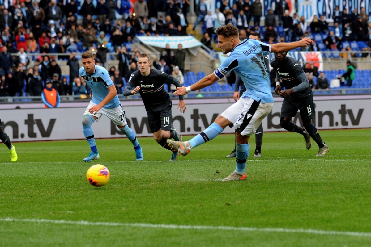 La Lazio travolge la Sampdoria 5-1 trascinata dall’inarrestabile Immobile e all’Olimpico festeggia l’11esima vittoria consecutiva in campionato. I biancocelesti salgono a 45 punti e mettono pressione a Inter e Juventus. La squadra di Inzaghi sblocca la gara al 7′ con il gol di Caicedo, male la difesa blucerchiata. Al 16′ il fallo di mano di Murru regala calcio di rigore, dal dischetto non sbaglia al 17′ l’attaccante napoletano. Passa poco tempo e il capocannoniere della Serie A realizza al 20′ la doppietta. L’unica occasione per la squadra di Ranieri è di Caprari nel primo tempo, deviata in corner da Strakosha. A inizio ripresa Bastos entra e segna al 54′ il quarto gol. La manita è del solito Immobile che al 65′ sigla la tripletta personale, ancora su calcio di rigore per il fallo di mano di Colley, e sale a 23 gol in 19 gare di campionato. Linetty al 70′ firma il gol della bandiera, ma la Sampdoria chiude in inferiorità numerica per l’espulsione diretta di Chabot per chiara occasione. I biancocelesti iniziano con la vittoria una settimana di fuoco, che li vedrà impegnati martedì con il Napoli in Coppa Italia e domenica nel derby con la Roma. Il 5 febbraio il recupero con l’Hellas in campionato.