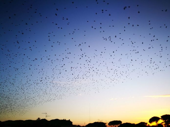 STORMI DI STORNI UCCELLO UCCELLI NEL CIELO DI ROMA