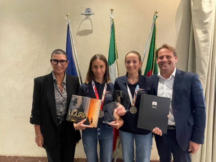 GENOVA (ITALPRESS) – Gli assessori di Regione Liguria allo Sport Simona Ferro e alla Formazione Marco Scajola hanno consegnato alle giovani veliste imperiesi Paola Correale e Viola Vianzone due targhe celebrative della storica vittoria ai campionati del mondo di vela under 15 classe 420. Correale e Vianzone, tesserate per lo Yacht Club Imperia e allenate dai coach Michele Casano e Agostino Amoretti, hanno conquistato la medaglia d’oro lo scorso 30 luglio ad Alicante, in Spagna, insieme a un ottimo quarto posto nel campionato mondiale under 17. “Ancora una volta la Liguria conferma la propria leadership a livello internazionale nel campo della vela e degli sport acquatici – commentano gli assessori Ferro e Scajola. – Le atlete imperiesi, grazie a mesi di duro lavoro e di costante perfezionamento, sono riuscite a portare la nostra regione sul tetto del mondo alla prima partecipazione assoluta ai campionati under 15. Grande merito va anche ai loro allenatori e a tutto lo Yacht Club Imperia, un presidio sportivo e sociale importantissimo nel ponente ligure che, con la sua rinomata scuola di vela, avvicina ogni anno decine di giovani a questa affascinante disciplina. A Paola e Viola i nostri più sentiti complimenti e, come si dice in questi casi, ‘buon ventò per le loro prossime sfide”.