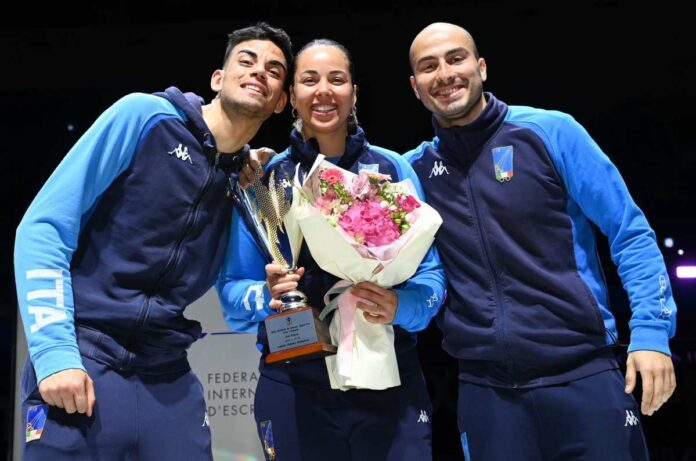 ROMA (ITALPRESS) – L’Italfioretto del ct Stefano Cerioni cala il tris nella giornata decisiva delle prove del Grand Prix maschile e femminile a Incheon, in Corea del Sud, e conquista il podio con Tommaso Marini, Alessio Foconi e Alice Volpi. Giornata da ricordare per Tommaso Marini, che conferma il suo momento magico e vince per la prima volta in carriera un GP Fie, che rappresenta il terzo podio stagionale dopo il primo posto di Belgrado e il terzo di Plovdiv. L’anconetano classe 2000 è stato autore di una prova di forza iniziata nel tabellone dei 64 con il successo 15-6 contro il cipriota Alex Tofalides. Subito dopo due derby: il primo vinto 15-13 su Filippo Macchi, il secondo vinto 15-5 su Francesco Ingargiola. Ai quarti il portacolori delle Fiamme Oro ha battuto 15-11 lo spagnolo Carlos Llavador, mentre in semifinale ha incontrato il francese Maximilien Chastanet in un assalto equilibrato e lo ha superato 15-13. La finale ha visto l’azzurro contro il fiorettista di Hong Kong Chun Yin Ryan Choi, che si era portato a un passo dalla vittoria sul 14-12, ma ha poi dovuto cedere al ritorno di Marini, che mettendo tre stoccate di fila si è aggiudicato il successo della prova. C’è dell’azzurro anche sul terzo gradino del podio grazie ad Alessio Foconi che, reduce dal primo posto di Plovdiv, ha conquistato ancora una volta l’accesso alle fasi finali di oggi ed è giunto fino in semifinale, quando ha poi ceduto 15-14 a Chun Yin Ryan Choi. In precedenza il fiorettista umbro aveva condotto un’ottima gara collezionando vittorie contro l’altro atleta di Hong Kong Nicholas Edward Choi (15-10), poi contro i giapponesi Kazuki Iimura e Kyosuke Matsuyama (15-9 e 15-10) e, ai quarti, contro l’inglese Marcus Mepstead (15-9). Terzo posto anche per Alice Volpi nella gara femminile, che vale il quarto podio in stagione per la senese dopo il tris di vittorie ottenute nelle prime tre tappe di St.Maur, Poznan e Guadalajara. L’azzurra delle Fiamme Oro in apertura di giornata ha superato le coreane Yujin Choi e Songoh Chae rispettivamente 15-7 e 15-8. Giunta tra le migliori 16 ha affrontato il derby interno contro Martina Favaretto e l’ha spuntata 15-13. In semifinale il match contro la canadese Eleanor Harvey si è concluso per 15-13 in favore di quest’ultima, che ha poi perso la finale contro l’americana Lee Kiefer col punteggio di 15-11. Tra gli altri azzurri è arrivato fino ai 16 Francesco Ingargiola, si sono fermati nel tabellone dei 32 Daniele Garozzo, Guillaume Bianchi, Damiano Rosatelli e Filippo Macchi, mentre hanno lasciato la gara nei 64 Giorgio Avola, Davide Filippi, Edoardo Luperi e Alessio Di Tommaso. Nella prova femminile è giunta fino ai quarti Francesca Palumbo, che ha chiuso settima, stop nel tabellone dei 16 Arianna Errigo, Martina Favaretto e Martina Batini. Out nei 32 Olga Rachele Calissi, Camilla Mancini, Martina Sinigalia e Marta Ricci, eliminate nei 64 Erica Cipressa e Serena Rossini.