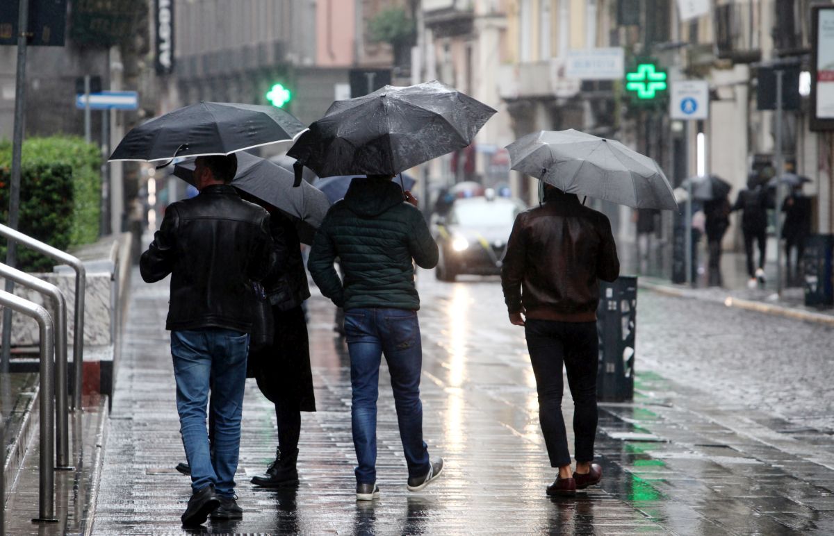 MALTEMPO PIOGGIA A NAPOLI PERSONA PERSONE CON OMBRELLO OMBRELLI IN VIA TOLEDO