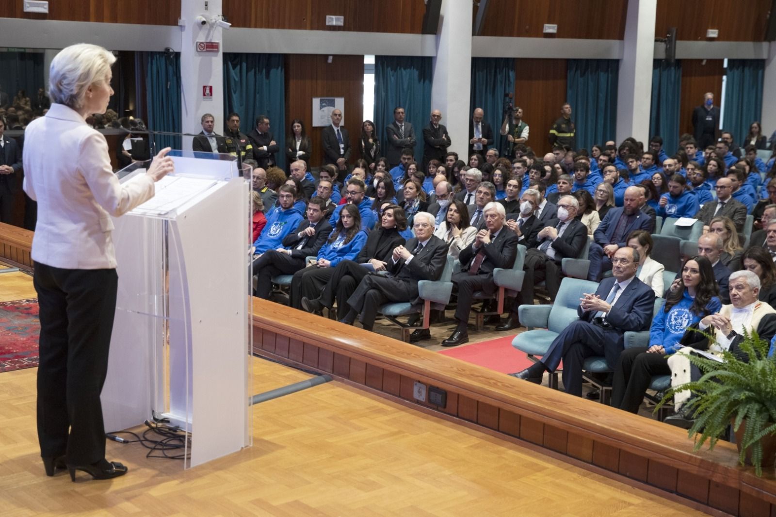 Un’occasione, quella di stamattina, che cade a un anno dall’inizio della guerra in Ucraina. “Visto dalla Sicilia, potrebbe sembrare un conflitto lontano. Ma non lo è – ha sottolineato la presidente della commissione Ue -. I giovani ucraini condividono con voi gli stessi desideri, che sono quelli di tutti i giovani europei. Vogliono essere indipendenti e padroni del proprio futuro. Vogliono vivere liberamente in un paese democratico”