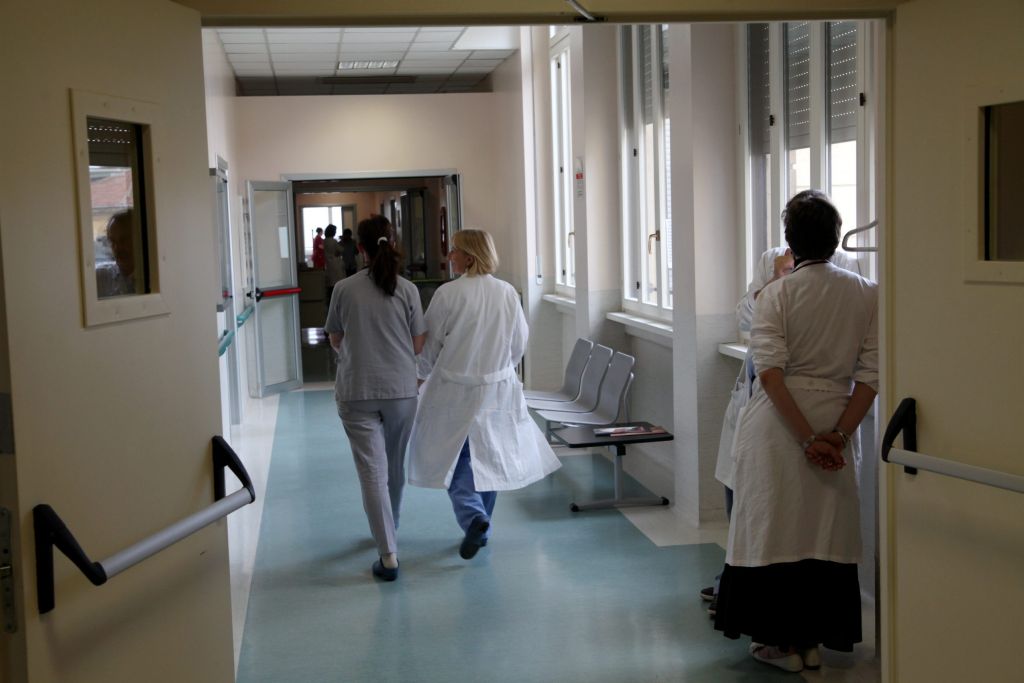 MEDICI E PERSONALE SANITARIO INFERMIERE NEL CORRIDOIO DEL POLICLINICO IN VIA FRANCESCO SFORZA 35 , PADIGLIONE SACCO . (MILANO - 2011-06-24, Eugenio Grosso / Fotogramma) p.s. la foto e' utilizzabile nel rispetto del contesto in cui e' stata scattata, e senza intento diffamatorio del decoro delle persone rappresentate