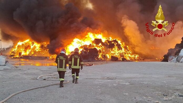 SALERNO (ITALPRESS) – Un incendio ha interessato migliaia di ecoballe contenenti rifiuti a Persano, in provincia di Salerno. I vigili del fuoco hanno lavorato tutta la notte per spegnere le fiamme. Sul posto sono intervenute squadre dai “distaccamenti di Salerno Centrale, Eboli e Agropoli” che “sono al lavoro dalle ore 19 di ieri a Persano”, fanno sapere su X i vigili del fuoco.