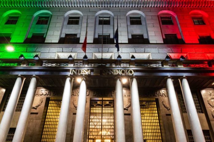 Milano, led tricolori per i palazzi di Intesa Sanpaolo