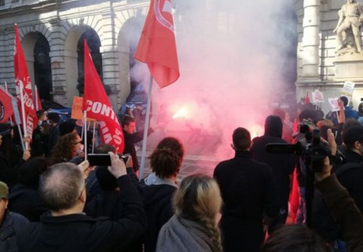 scena si è ripetuta davanti a Palazzo di città, sede del comune con un palloncino di vernice che ha imbrattato la facciata. Poco dopo sono stato accesi molti fumogeni e sono stati intonati cori contro classe politica e forze dell’ordine.