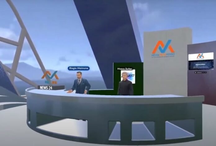 Negli spazi della Società milanese di Via Visconti di Modrone, all’interno della Galleria San Babila, il 27 settembre 2022 gli Avatar dei giornalisti Biagio Maimone e Marco Sutter hanno condotto il primo notiziario in Metaverso.