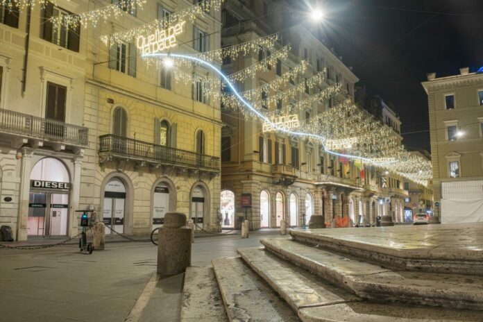 Natale a Roma, accesi l’albero di Piazza Venezia e le luminarie di Via del Corso