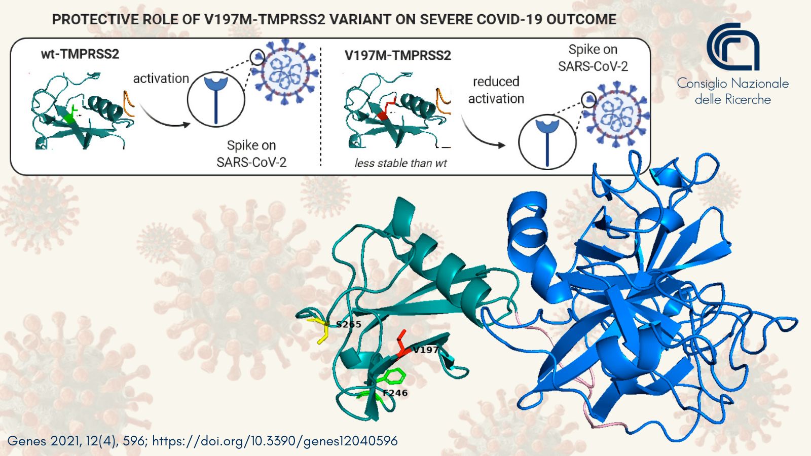 “Il gene TMPRSS2 viene utilizzato nella cellula come stampo per le sintesi di un enzima, una proteasi, in grado di agire su altre proteine, nel caso specifico questa proteasi agisce sulla proteina Spike del coronavirus che è nota essere un elemento chiave per l’instaurarsi dell’infezione”, spiega Giuseppina Andreotti, ricercatrice del Cnr-Icb, che ha coordinato il team di ricerca insieme a Maria Vittoria Cubellis, ricercatrice associata del Cnr-Icb e docente del Dipartimento di biologia dell’Università Federico II di Napoli. “I dati hanno messo in luce che in questi gruppi di pazienti, uomini giovani e donne anziane, quelli che avevano una mutazione nel gene TMPRSS2 avevano un quadro clinico meno severo rispetto a coloro che non presentavano la mutazione”.