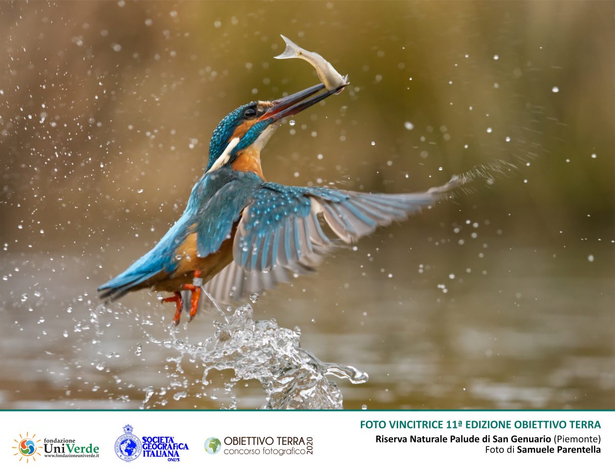 ROMA (ITALPRESS) – E’ Samuele Parentella il vincitore della 11a edizione di “Obiettivo Terra” 2020, il concorso fotografico dedicato alle bellezze e alle peculiarità delle Aree Protette d’Italia, promosso dalla Fondazione UniVerde e dalla Società Geografica Italiana Onlus, per celebrare la 50esima Giornata Mondiale della Terra (22 aprile). La foto vincitrice ritrae un martin pescatore che, a pelo d’acqua, stringe nel becco una piccola preda, immortalato nella Riserva Naturale della Palude di San Genuario (Piemonte).
