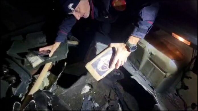Sul posto è intervenuto anche personale della Compagnia Carabinieri di Ostia e del Nucleo Cinofili di Santa Maria di Galeria e grazie al fiuto dei cani, all’interno del veicolo, in un doppiofondo ricavato nel portabagagli, sono stati rinvenuti altri 8 panetti di cocaina.