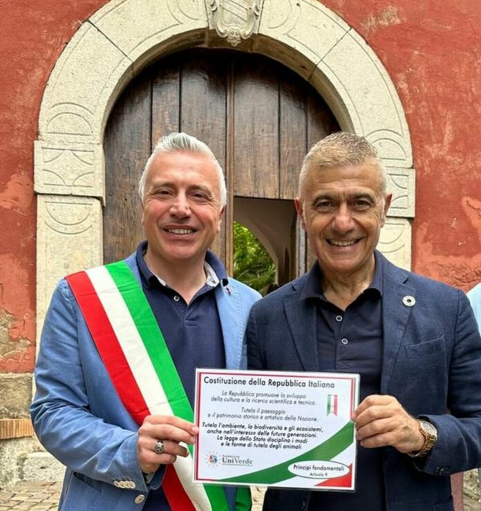Alfonso Pecoraro Scanio, presidente della fondazione presidente della fondazione Univerde e promotore della petizione per inserire la tutela dell’ambiente in costituzione e già ministro ha consegnato dinanzi alla casa comunale al sindaco Gerardo Santoli la targa con l’art 9. Erano presenti anche gli assessori Giovanni Toriello e Francesca Festa .