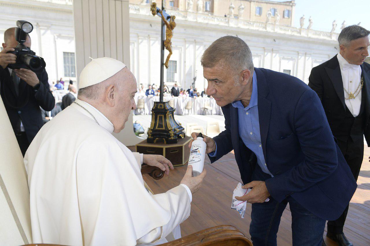 ROMA (ITALPRESS) – Sul sagrato di San Pietro, in occasione dell’udienza generale, Papa Francesco ha benedetto la borraccia e la bandiera di “Mediterraneo da Remare”, la campagna di attivismo civico a difesa del mare e plasticFree, giunta alla 12esima edizione e promossa da Alfonso Pecoraro Scanio, presidente della fondazione Univerde e già ministro dell’Agricoltura e dell’Ambiente, con l’adesione di Marevivo e della Guardia Costiera. “Incontrare il pontefice e ottenere la benedizione per i simboli della nostra azione a difesa del mare è stata una grande emozione – ha commentato Pecoraro Scanio -. Specie in questo periodo, Papa Francesco è la più autorevole voce a favore della Pace e dell’Ambiente. Dall’enciclica Laudato Sì all’attuale costante impegno contro guerra e armi, il pontefice merita di essere ascoltato perchè governi e popoli non si rassegnino alle guerre e alla crisi climatica. Serve agire con coraggio e determinazione”. (ITALPRESS).