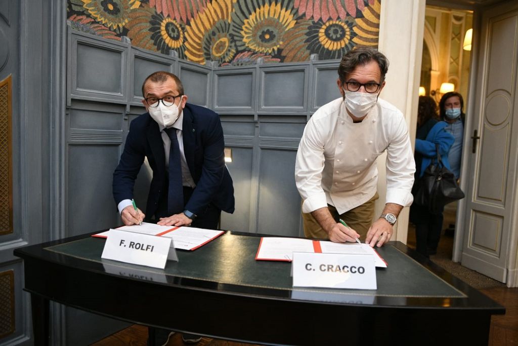 “L’intesa siglata oggi ha anche un forte valore simbolico perchè coincide con la ripresa di un settore fortemente penalizzato dall’epidemia: la ristorazione. Servono giovani volonterosi e appassionati – ha sottolineato Cracco – perchè registriamo una preoccupante carenza di personale in cucina e in sala. Con la nostra scuola di cucina e il sostegno di Regione Lombardia vogliamo avvicinare ragazze e aspiranti chef per esaltare le loro vocazioni e scoprire nuovi talenti”.