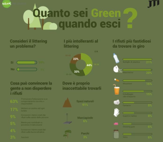 La onlus ha lanciato, in collaborazione con l’azienda operante nel settore del tabacco, il sondaggio Quanto Sei Green Quando Esci?per misurare la percezione del fenomeno littering e valutarne l’impatto sul giudizio dell’opinione pubblica in Italia. Dai dati emerge che sono i giovani i più intolleranti all’abbandono dei rifiuti per strada, negli spazi naturali o nelle aree pubbliche – ovvero, appunto, il littering – con il 44% corrispondente alla fascia 18-34 anni, rispetto al 33% dei 35-44 e al 23% dei 55-65 anni. Di questo primo cluster, il 52% riguarda la Generazione Z, tra i 18 e i 24 anni, con una netta rappresentanza al femminile (71%) e una propensione alle buone condotte che non si limita al solo rispetto individuale delle regole per il corretto smaltimento dei rifiuti. Sono coloro che, nel 99% dei casi rilevati, se si trovano una cartaccia tra le mani la tengono in tasca fino a quando non hanno la possibilità di smaltirla correttamente, spesso (quasi la metà delle volte) addirittura fino a casa. Non solo, sono i 18-24enni a dichiarare di intervenire se vedono qualcuno gettare cartacce per terra, andando dal responsabile per redarguirlo.