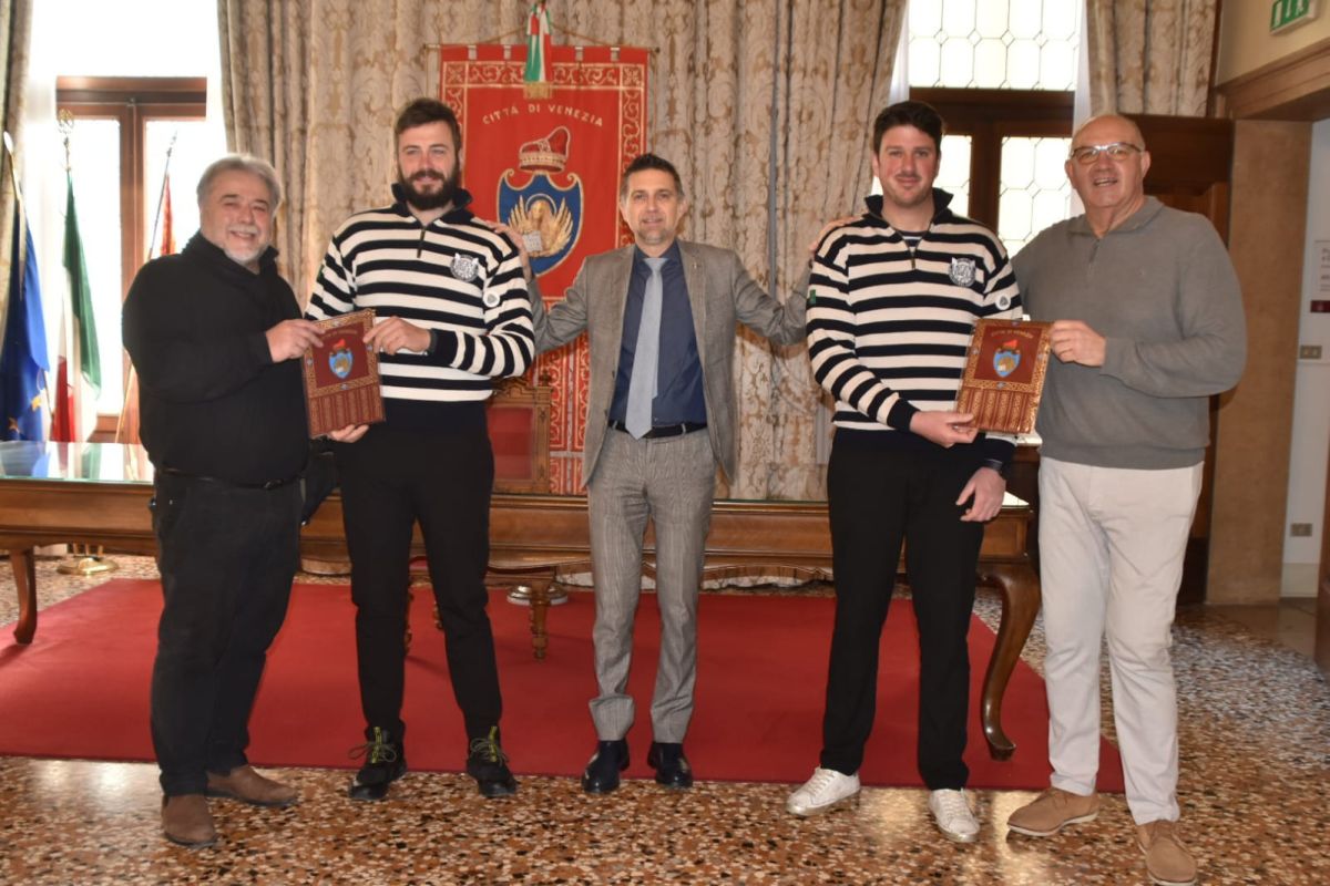 VENEZIA (ITALPRESS) – Sono stati ricevuti questa mattina a Ca’ Farsetti, ringraziati e premiati con un gagliardetto, dall’assessore comunale alle Attività produttive, Sebastiano Costalonga e dal consigliere delegato alla Tutela della tradizioni, Giovanni Giusto, i due gondolieri che avevano salvato nei giorni scorsi dall’annegamento un giovane che si era lanciato in Canal Grande, nei pressi di Ca’ Foscari, da un vaporetto.