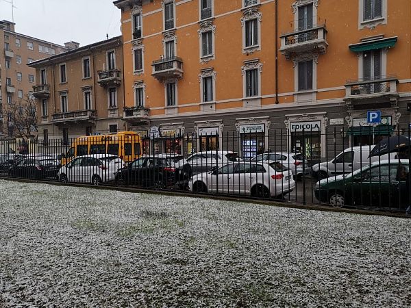 Risveglio imbiancato per Milano. Come previsto dai meteorologi ha iniziato a nevicare attorno alle 6.30 sul capoluogo lombardo.