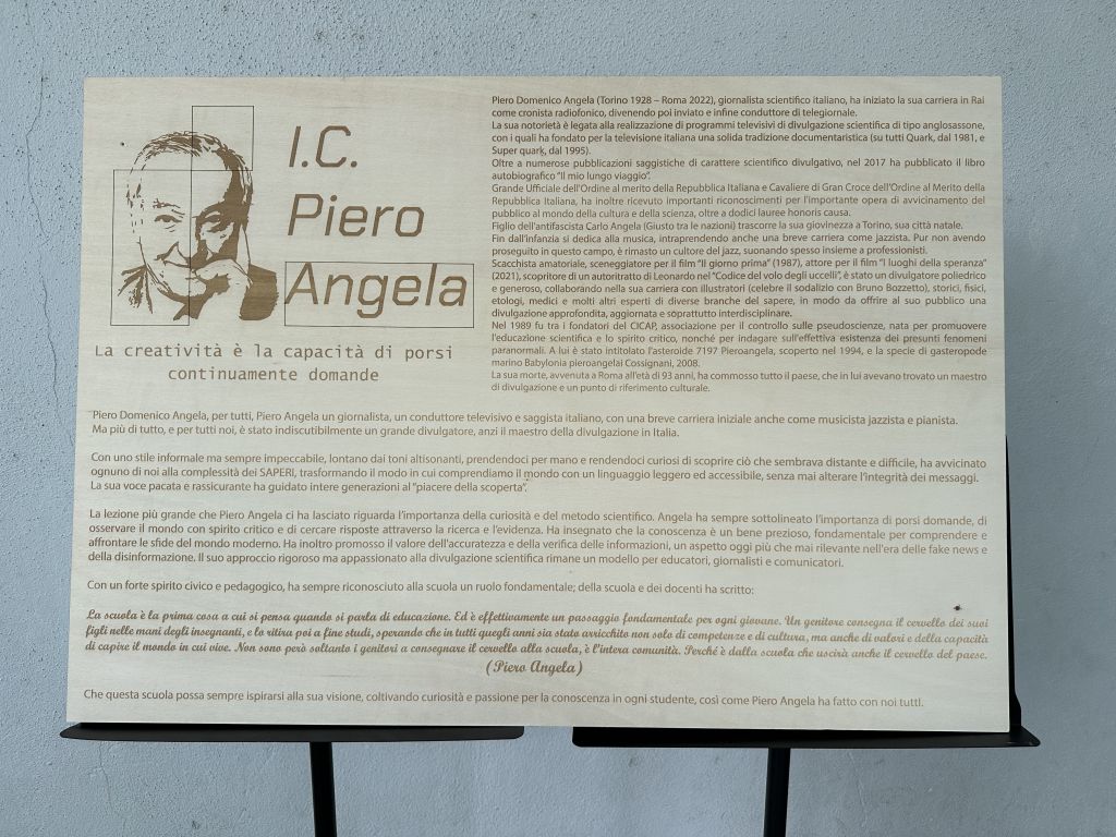 ROMA (ITALPRESS) – “Questa mattina, su delega del sindaco Roberto Gualtieri, ho partecipato alla cerimonia di intitolazione a Piero Angela dell’Istituto Comprensivo di via Ratto delle Sabine a Casal Monastero. Ringrazio la dirigente Stefania Forte e tutta la comunità scolastica per aver voluto ricordare così un’eccellenza della cultura scientifica del nostro Paese. Piero Angela non è stato solo un divulgatore scientifico, ma un vero e proprio maestro di vita. Ha trasmesso la sua passione per la conoscenza con un linguaggio semplice e coinvolgente, avvicinando milioni di persone alla scienza e rendendola accessibile a tutti. E’ bello dunque sapere che questa scuola da oggi sarà ispirata ai valori e alla figura di Piero Angela. Associare il suo nome a questo luogo significa non solo onorare la sua memoria, ma anche assumere un impegno importante per il futuro, la formazione e la crescita dei nostri ragazzi”. Così in una nota la presidente dell’Assemblea capitolina Svetlana Celli.(ITALPRESS).