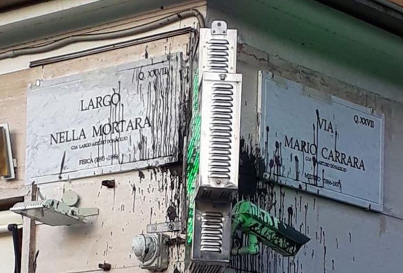 Sono state imbrattate a Roma le targhe di strade dedicate a vittime delle leggi razziali, Nella Mortara e Mario Carrara, nel XIV Municipio.