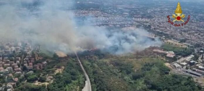 nord-ovest di Roma. In fiamme il Parco della Pineta Sacchetti dove si sarebbe sviluppato il primo focolaio attorno alle 14. Tra
